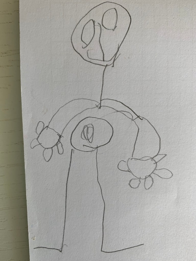 Resto di stucco quando osservo il disegno di mio figlio e lo accosto alle figure rappresenta da Picasso: le mani sono estremamente simili. Glielo faccio notare e lui si inorgoglisce.